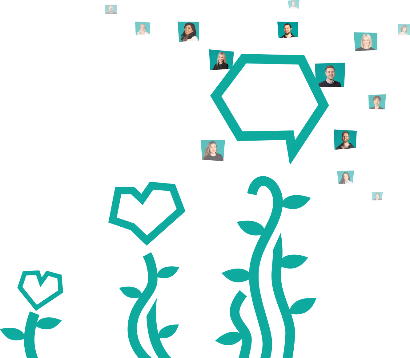 Stilen som ble utviklet til boost.ai kalles ‘human touch’, og er ment for å addressere myten om at ‘roboten’ skaper kvaliteten selv. Dette er en illusjon: Det er dyktige mennesker på ‘bakrommet’ som sørger for at ting stemmer.Vektorelementer er alltid symmetriske og perfekte. Med denne stilen legges en asymmetri til alt for å hinte til at mennesket har rørt ved alt det automatiske.